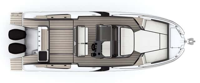 Precio Flyer 8.8 SpaceDeck: 40.100 euros, barco sin motores; y pack con dos Suzuki DF200 de 200 Hp, 71.080 euros, sin impuestos.
