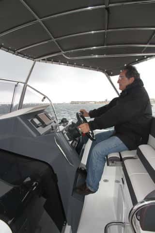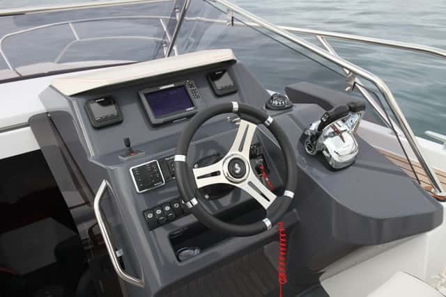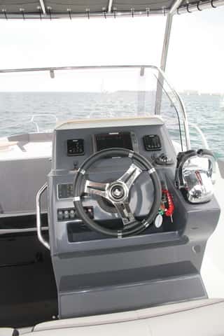 Son prácticamente iguales, aunque el de la SunDeck queda más desplazado a estribor debido a la entrada de la cabina y al módulo de la cocina exterior. Presenta un asiento para dos plazas, con la base plegable y dispone de reposapiés. La consola es algo más compacta pero se ha distribuido bien, con todos los indicadores de los Suzuki y una pantalla multifunción, opcional. Los mandos son electrónicos en ambos casos y, en esta SunDeck, el parabrisas, algo más deportivo, no protege tan bien como el de la Spacedeck, que es mucho más alto y vertical, pero se agradece el asidero frente a acompañante.