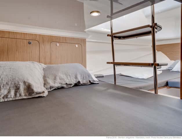 En todo caso, ambas cabinas se han optimizado al máximo, intentando que tanto la SunDeck como la SpaceDeck puedan ofrecer algo más que los mínimos de un crucero de día. Una observación: esta vez Bénéteau no lanzará la versión SportDeck, existente en las otras Flyer.