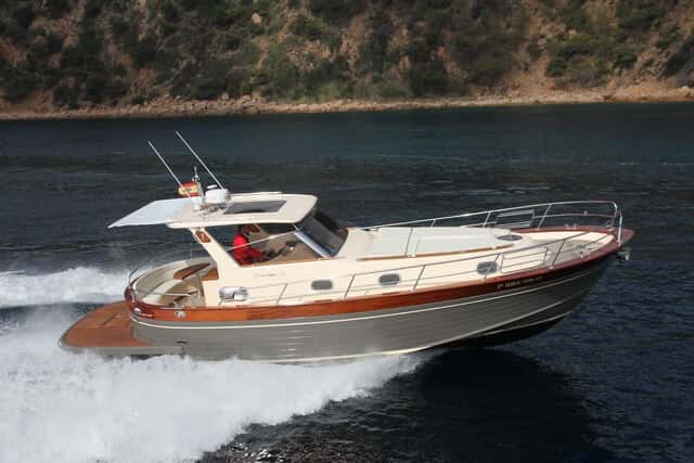 La Gozzo Positano 38 se basa en una carena de semiplaneo —que en realidad planea más que bien— estable, con bastante manga en relación a la eslora, y una proa con notable francobordo y buena V, lo que proporciona una navegación confortable y seca. Es una embarcación de estética atemporal, clásica ya la vez actual, pero que incorpora la última tecnología en sus instalaciones y motorización, como veremos.