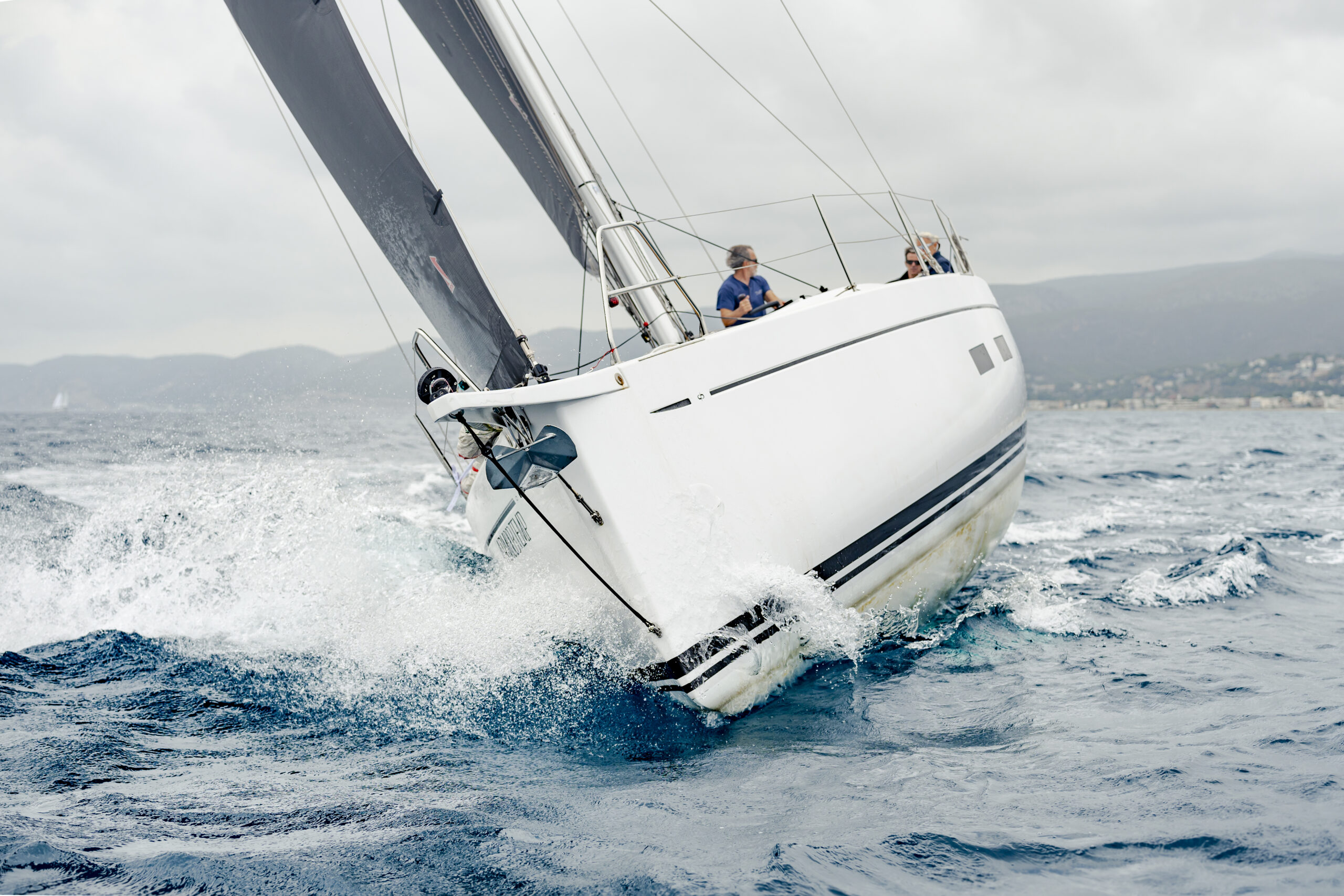 Durante la navegación la intensidad del viento apenas superó los 7 u 8 nudos, una condición en la que la ligereza de la construcción es clave: es un barco de casi 12 metros de eslora que pesa 7.500 kg, de los cuales 2.500 corresponden a la quilla. Navegando en ceñida llegó a mantener los 5 nudos con un ángulo aparente de 25°, solo al caer hasta 33° aumentaba una décima, hasta 5,1 nudos. El asimétrico nos permitió caer hasta los 100° de aparente para ver los primeros registros por encima de los seis nudos, rozando los siete en varias oportunidades.