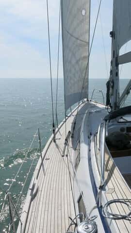 Aunque a simple vista puede parecer que su punto fuerte es la navegación, estamos muy equivocados. Tuvimos la suerte de probar el barco en dos condiciones muy distintas. A primera hora de la mañana en que subimos a bordo, en aguas de La Rochelle, en el marco de las pruebas para elegir al European Yacht of the Year 2018, prácticamente no había nada de viento, y el HR-44 nos sorprendió marcando una velocidad en ceñida de 3,3 nudos con 2,6 nudos de viento real. Con el paso de las horas el viento subió hasta los siete nudos, y la velocidad máxima en el mismo rumbo fue de 6,3 nudos. Unos datos que acompañados de las buenas sensaciones al timón nos dejaron asombrados.