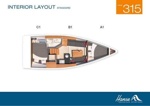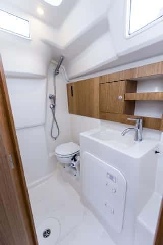 Un crucero para cuatro es lo que mejor define el concepto del Hanse 315 desde el punto de vista de la habitabilidad. Y sin embargo, tanto la altura interior como la amplitud sugieren —y en realidad ofrece— más capacidad. El diseño permite, gracias al plan interior muy bajo, lograr 1,91 metros en el salón y 1,77 metros bajo cubierta en proa sin que como hemos dicho al principio se resientan las líneas exteriores de la caseta, que puede mantenerse así con un perfil bajo.El baño no se queda atrás: es uno de los más espaciosos y altos que hemos visto en esta categoría y eslora.