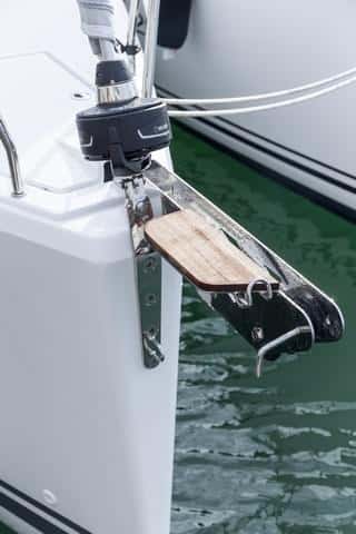 Tras los pedestales de gobierno, inclinados hacia afuera para dejar paso central, un registro deja al descubierto el sector del timón, de manera que su inspección y control no puede ser más fácil.