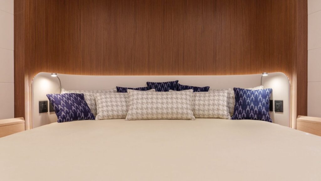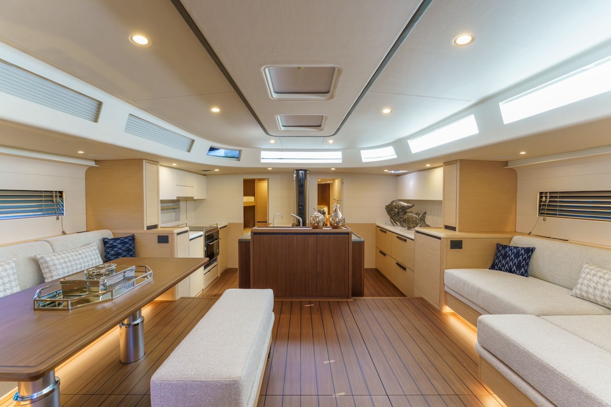 En cubierta, la típica bañera estilo mediterráneo ofrece amplios espacios para socializar y disfrutar del aire libre, mientras que la maniobra, completamente reenviada a popa, facilita la navegación con tripulación reducida. La caseta destaca por sus líneas que evocan el diseño automovilístico y por una amplia superficie acristalada en la parte delantera, proporcionando una visibilidad de 360º desde el interior. El diseño “raised salón” ofrece mayor libertad a la hora de distribuir los espacios interiores, lo que le ha permitido a Lucio Micheletti diseñar una embarcación con ambientes sorprendentemente amplios para un velero de esta eslora, como se nota en el salón. La amplitud de los espacios no es lo único destacable del interior de este primer modelo, cuya estética deja sin aliento y resalta la habilidad del diseñador italiano para combinar, a la perfección, funcionalidad con una deslumbrante belleza. “Para el exterior, he intentado mantener solo elementos útiles y funcionales, mientras que para el interior he priorizado la sensación de amplitud y luminosidad” comenta Lucio Micheletti quien colaborará estrechamente con la oficina técnica de ICE Yachts en el diseño de cada modelo de esta nueva serie para entregar a cada armador su embarcación ideal, asegurando así un alto nivel de personalización.