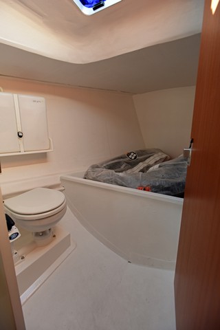 Aunque la cabina de proa se destine a pañol de velas, cabos y demás accesorios, con un espacio abierto separado especialmente dedicado a contenerlas, y también debido a que es ahí donde se encuentra el wc, la escotilla de 50X50 cm de este volumen ofrece luz y ventilación suficiente.