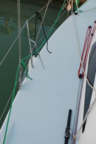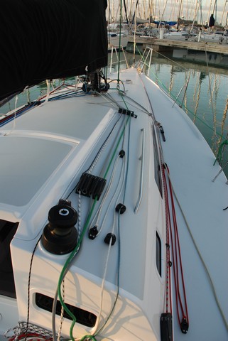 Hay sendos winches a cada banda del tambucho para la maniobra de drizas y pasamanos de inox sobre la caseta. Toda la maniobra es vista y muy desmultiplicada.