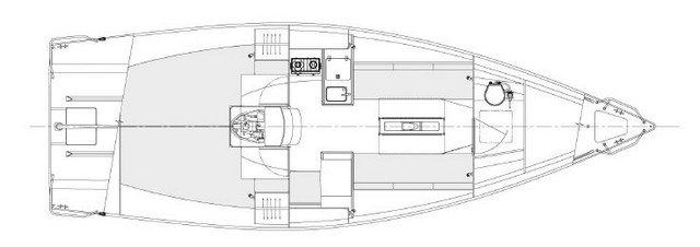 Esta nueva incorporación a la gama deportiva del astillero de Les Sables d’Olonne, en la costa atlántica francesa, es efectivamente un velero multipropósito, y así lo refleja el plan de cubierta y el aparejo, que están diseñados y optimizados para que el barco sea fácilmente manejable.