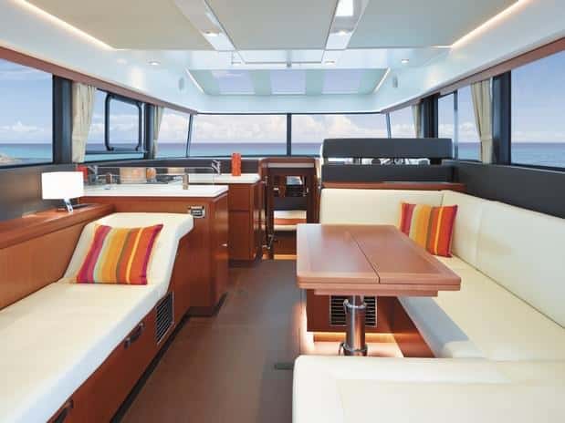 Interiores basados en la funcionalidad, el diseño sobrio y funcional, luminoso, respetando los espacios, y donde no falta una escotilla o ventana para garantizar una buena ventilación. Interiores concebidos, sobre todo, para estar muchas horas a bordo.