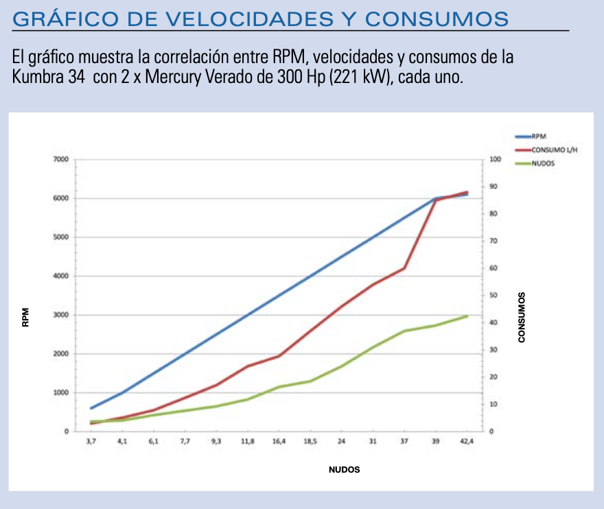 De diseño atrevido y con una eslora poco común para las altas prestaciones que ofrece, la Kumbra 34, con consola central y un interior muy cuidado, presenta un casco muy efectivo con un step que facilita una suave entrada en la ola.