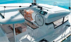 Construido en infusión para reducir peso, el nuevo catamarán está firmado por VPLP, quienes han creado un plan de cubierta y de maniobra simple y eficaz que permite controlar las maniobras desde el puesto de gobierno, acceder directamente desde la bañera al puesto de gobierno elevado de estribor, circular con toda seguridad por cubierta y embarcar y desembarcar fácilmente desde los faldones de popa.