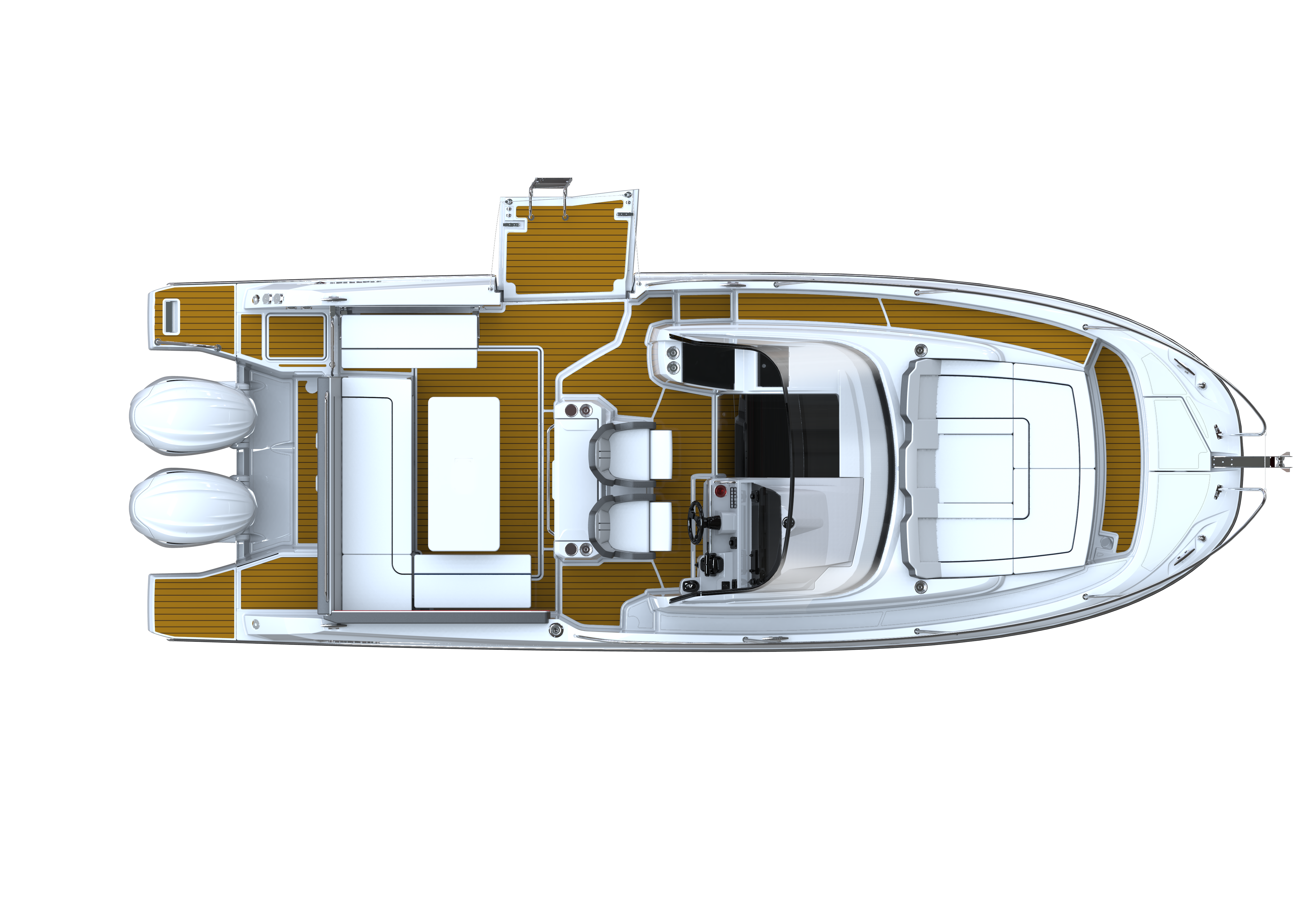 El nuevo modelo se adapta a una multitud de planes, desde salidas diurnas a esquí acuático, pesca o buceo. En cubierta el parabrisas de cristal y el T-top protegen al pasaje, mientras que el respaldo de popa puede transformarse en solárium, y en proa, las tumbonas integradas se destinan al relax.