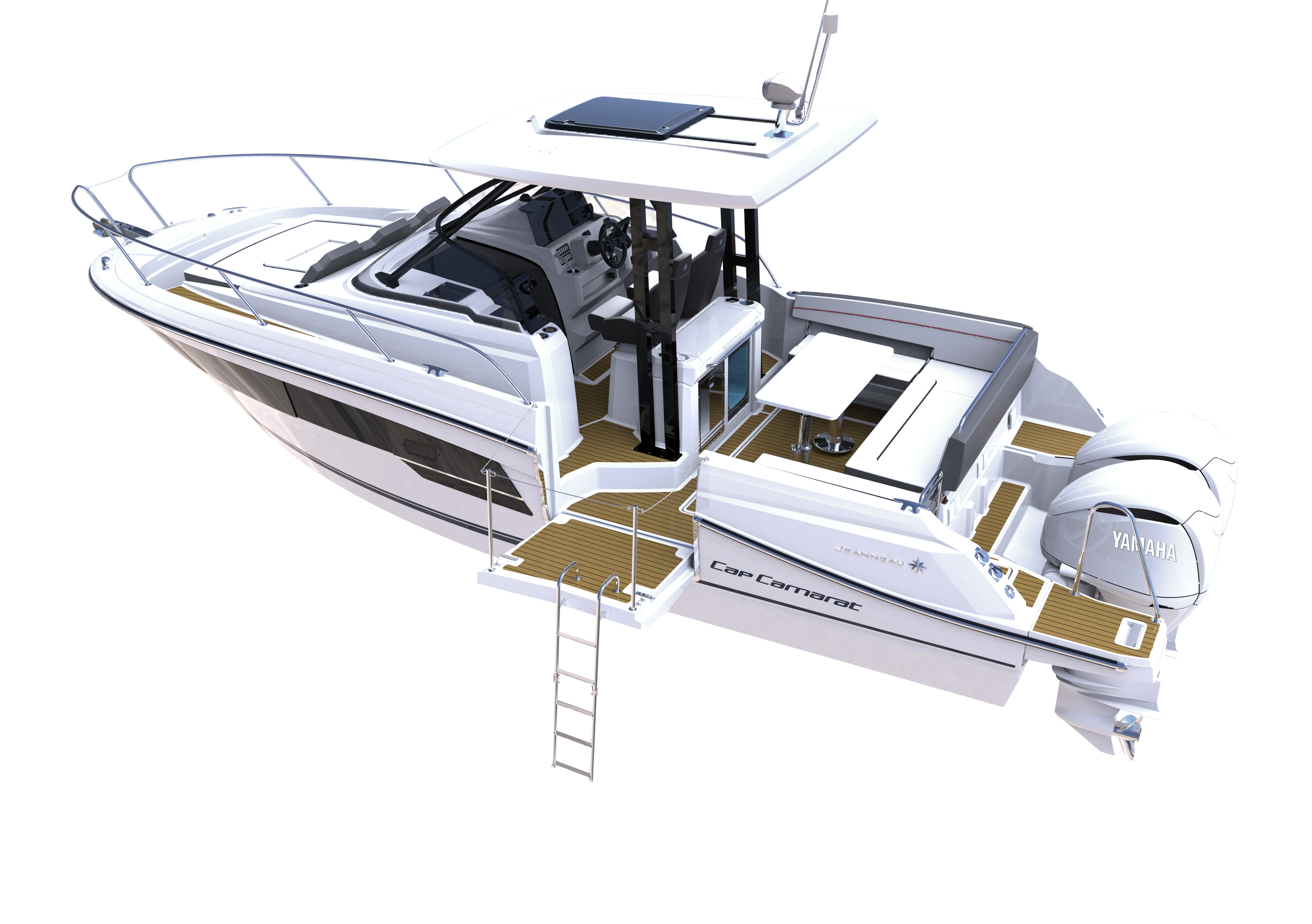 La línea Cap Camarat, formada por lanchas a motor fueraborda abiertas de 5 a 12 metros, también sigue ampliándose con modelos cada vez más grandes y mayores potencias fueraborda para adaptarse a las tendencias del mercado. Este año, Jeanneau anuncia la nueva Cap Camarat 9.0 WA Serie 2.