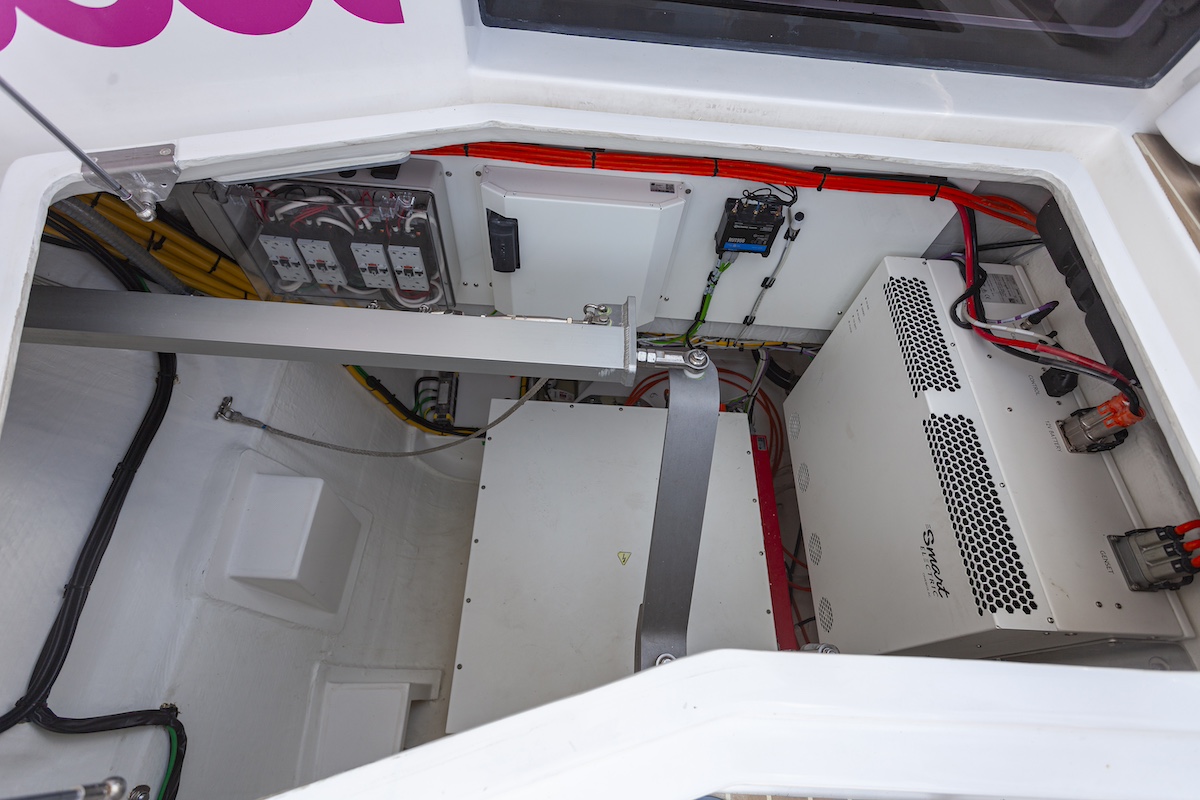 Cada sistema es autónomo, es decir, que cada motor tiene su OneBox para gestionar la corriente alterna y la corriente continua. De esta forma, los elementos no se comparten, por lo que, si hubiera un problema en un motor, se podría seguir navegando con el otro.