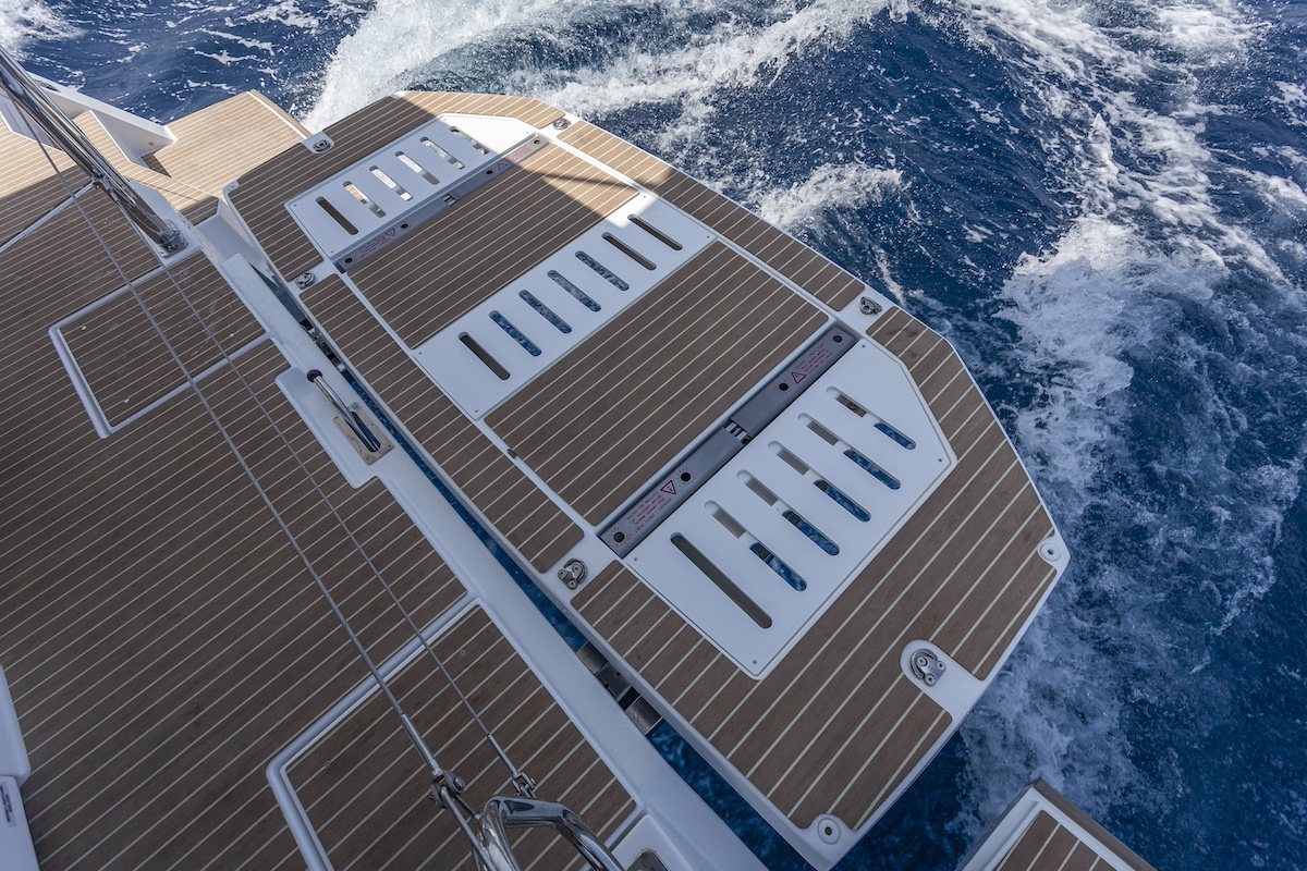 Durante nuestra prueba, y navegando con 12 nudos a 60° hacíamos siete nudos de velocidad. Con un poco menos de viento real, 10 nudos, navegando con asimétrico a 120°, alcanzamos una velocidad de 8,2 nudos. Son marcas notables para un catamarán de este desplazamiento, especialmente en rumbos cerrados, por lo que podemos decir que nos encontramos ante una embarcación que no solo proporcionará seguridad y confort a sus propietarios en navegaciones largas, sino que también les permitirá disfrutar de la vela y divertirse apurando al máximo las prestaciones que ofrece el paquete de velas Performance.