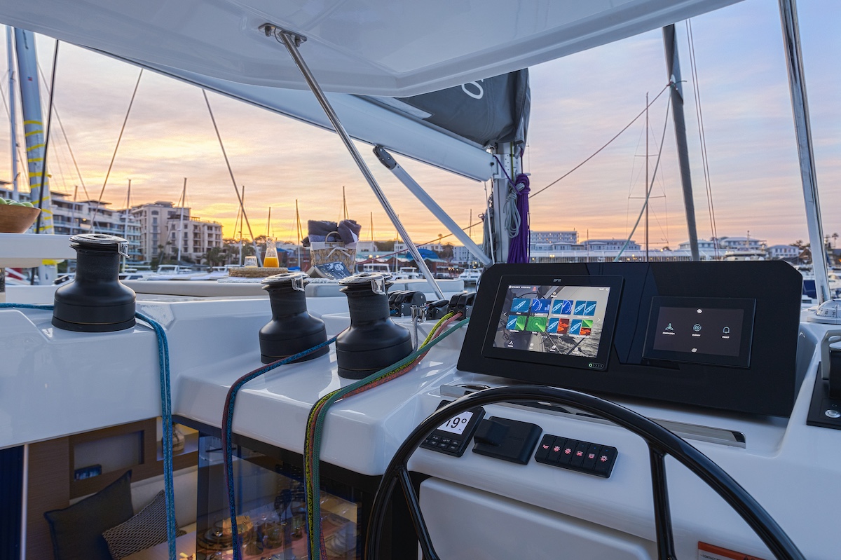 El piloto dispone de todos los winches de maniobra centralizados y al alcance de la mano, así como las pantallas de navegación.