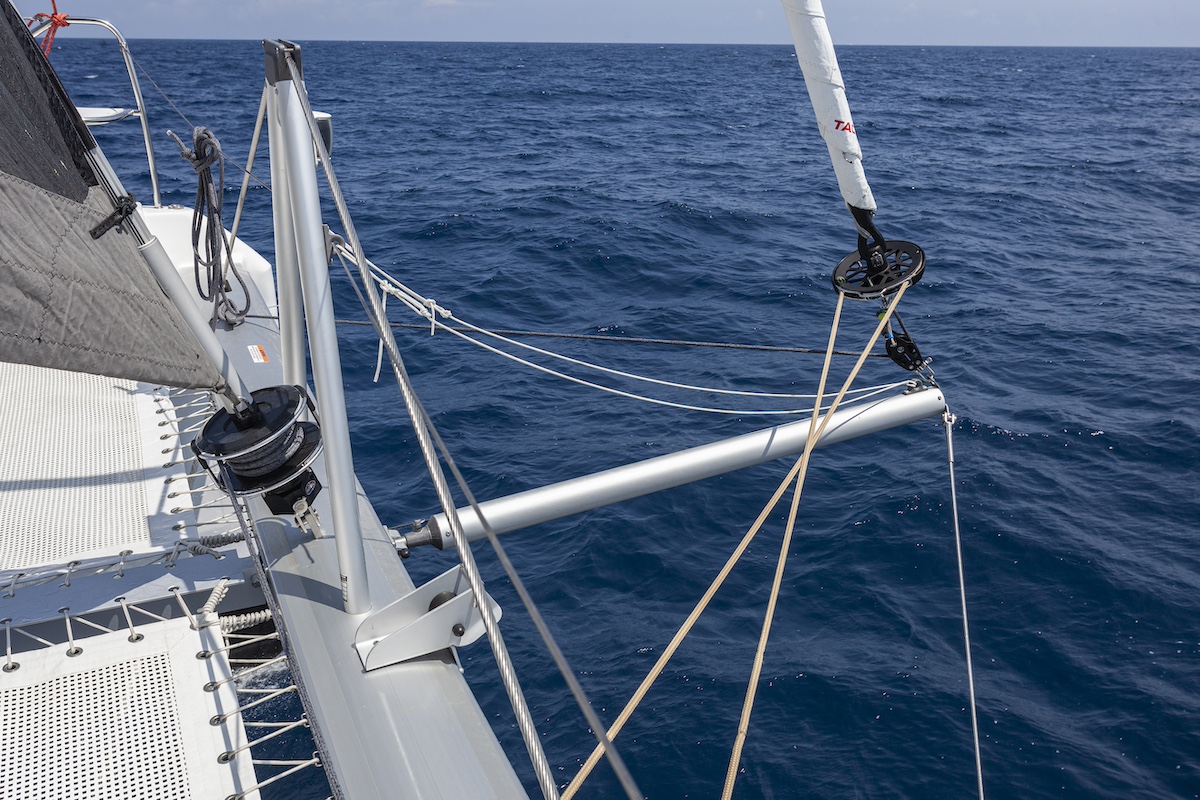 El concepto del Leopard 46 es el de un catamarán de crucero, robusto y pensado para alta mar. Sin embargo, el diseño ha buscado un compromiso para que sea al mismo tiempo divertido y capaz de satisfacer las exigencias de los propietarios a quienes les gusta sacarle el máximo rendimiento a su barco. Por eso, el mástil es más alto que el de su predecesor, el Leopard 45, lo que añade un 12% más de superficie vélica a las velas tradicionales, pero un 15% más si el armador elige el paquete de rendimiento que ofrece el astillero, con velas de gama alta de aramida de corte radial, que mantienen una forma más refinada con mucha menos elasticidad. De serie, también las escotas y drizas se han mejorado para reducir la elasticidad y son mucho menos propensas a las rozaduras.