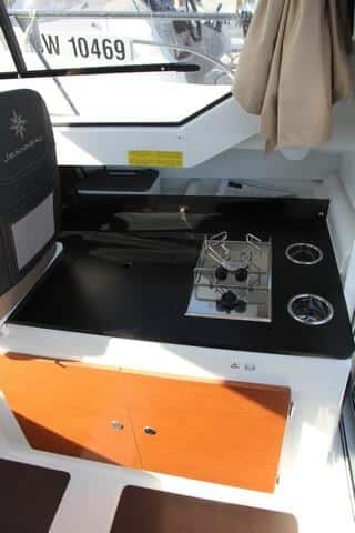 Modelo muy bien estudiado, ideal tanto para el crucero costero familiar como para la pesca, concebido para acomodar por la noche hasta cuatro personas holgadamente, y con la posibilidad de adaptarlo en equipamiento con los packs que cada armador desee. Un barco, además, interesante por su relación precio calidad, con Yamaha, y que promete ser otro superventas de Jeanneau.