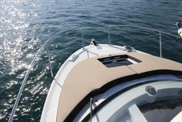 Con el fin de ganar espacio en el interior los pasos laterales tienen diferente anchura, algo que ya es habitual en este tipo de embarcaciones. El de estribor tiene unos siete centímetros más que el de babor, y resulta cómodo y seguro, gracias a los pasamanos que hay sobre el techo de la timonera. La proa cumple con lo esperado: balcón abierto, pozo de anclas correcto y los herrajes bien dispuestos, además de ofrecer la posibilidad de montar otra colchoneta de solárium cobre la cubierta.