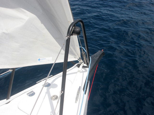 En proa se puede instalar una delfinera integrada de carbono para asimétrico o código 0.