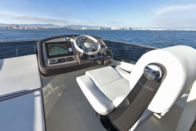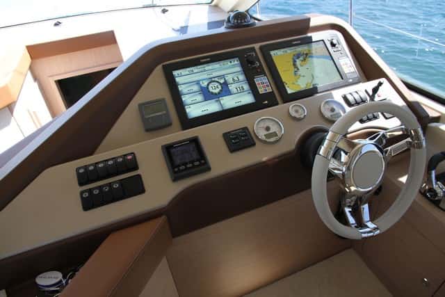 El puesto de gobierno del fly está en la línea del resto del barco: cómodo, elegante y con el menor detalle.