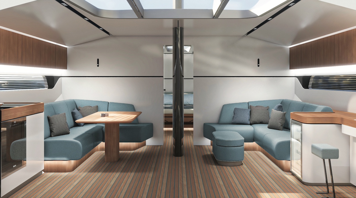 El toque único de Mylius Yachts es evidente bajo cubierta, donde la luz, el confort y la elegante simplicidad son protagonistas.