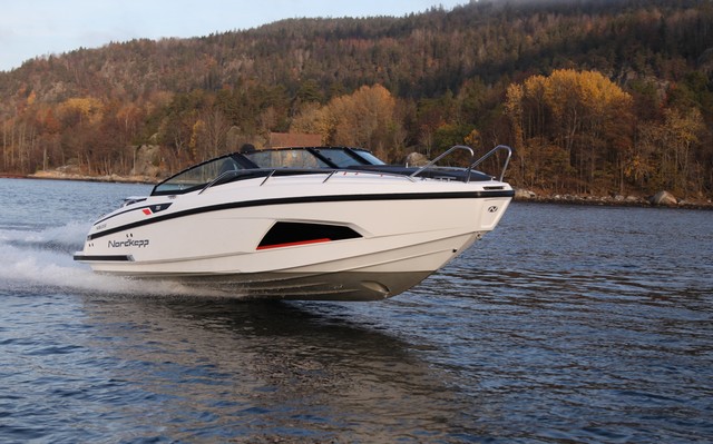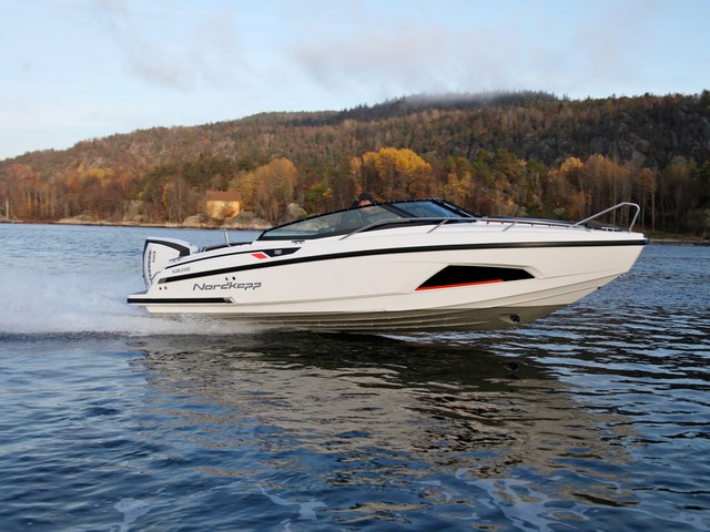 Tuvimos la ocasión de probar la Noblesse 720 en Noruega. Es un este modelo que responde al programa de embarcación de día, bajo una configuración de lancha de estilo nórdico, como hay pocas en esta eslora. En diseño del casco pertenece a Espen Thorup, autor de no pocos modelos a motor y a vela. El largo viaje a los fiordos en la localidad de Saetre, a pocos kilómetros al sur de Asker, valió la pena para disfrutar de esta singular embarcación. Aguas recogidas, poco oleaje y frío. Poca luz y óptimas condiciones para poner a fondo esta Nordkapp de 7 metros de eslora equipada con un Evinrude de 250 Hp, potencia más que correcta para mantener un confortable régimen de 32 nudos a 3.600 rpm. Con este motor y el gas a fondo alcanzamos los 51,5 a 5.400 rpm, aunque, claro que la superficie del mar estaba casi llana, y a esta velocidad por encima de los 50 nudos resulta un placer comprobar el comportamiento de esta carena con un ángulo de carena de 22 grados, estable y con gran capacidad de planeo.