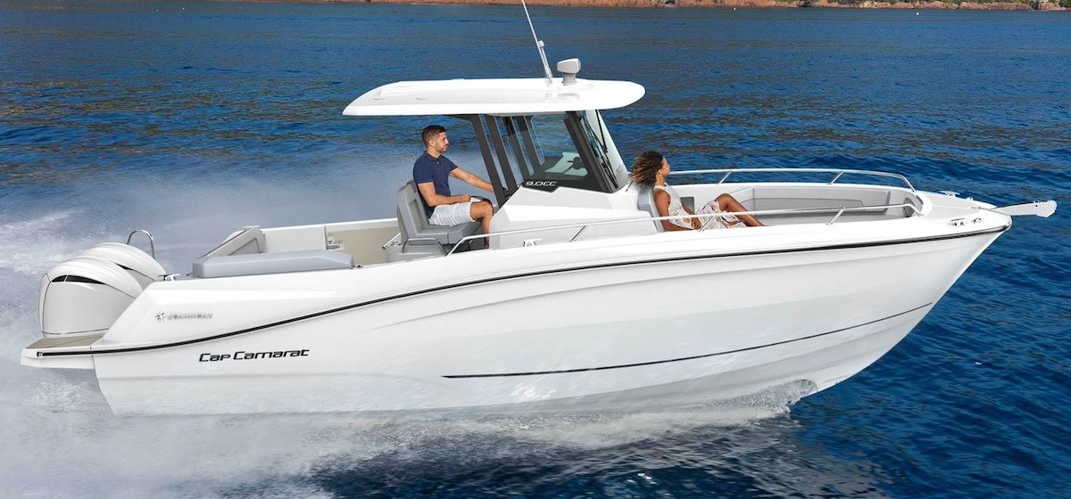 La nueva Cap Camarat 9.0 CC Serie 2 encarna el concepto de day-boat moderno: versátil, deportivo y adaptado a salidas familiares. Su casco de líneas elegantes y su carena optimizada permiten una navegación equilibrada incluso en condiciones exigentes, ofreciendo seguridad y confort a la tripulación.