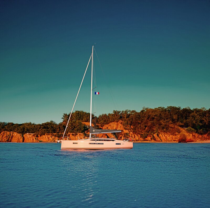 El casco, derivado del reconocido Sun Odyssey 410, incorpora proa invertida, roda emergida y pantoque firme, lo que garantiza un buen rendimiento y estabilidad. La ligereza estructural, junto con una mayor superficie vélica, refuerza las sensaciones al timón, que se beneficia de dobles ruedas con cojinetes autoalineables para una navegación segura y precisa. La versatilidad es otro de sus puntos fuertes, con cuatro opciones de plano vélico y tres configuraciones de quilla u orza, adaptándose a distintos programas de crucero.