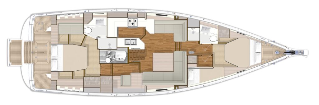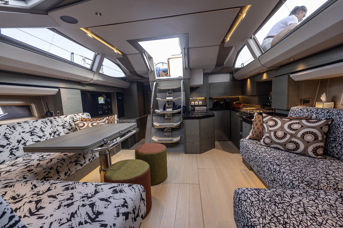 En el interior encontraremos dos espacios clave que definen las características que un barco oceánico debe tener, comodidad y calidades marineras. Ambas características se reflejan en el camarote principal, en popa, donde nada hace pensar que estamos en un 50 pies, y la cocina donde no falta nada y todo se dispone como para cocinar en cualquier condición.
