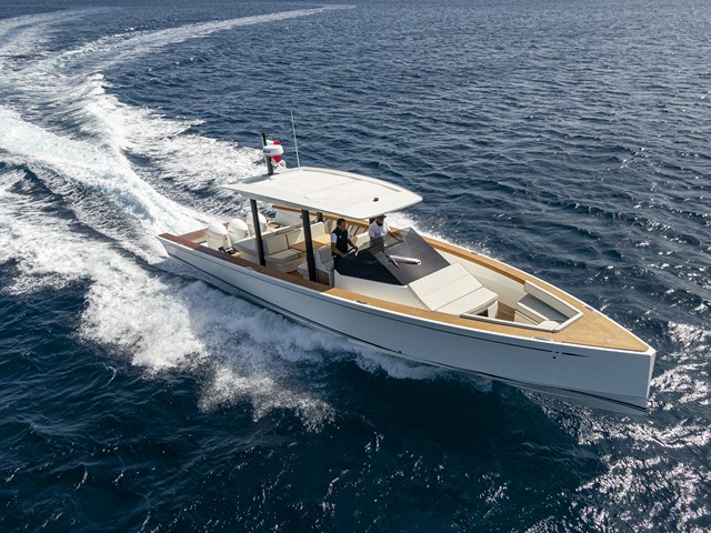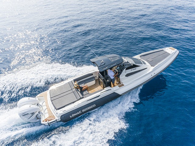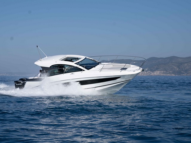 La nueva GT 36 con motorización fueraborda es un crucero deportivo que con los dos Suzuki de hélices contrarrotatorias ofrece unas prestaciones óptimas.