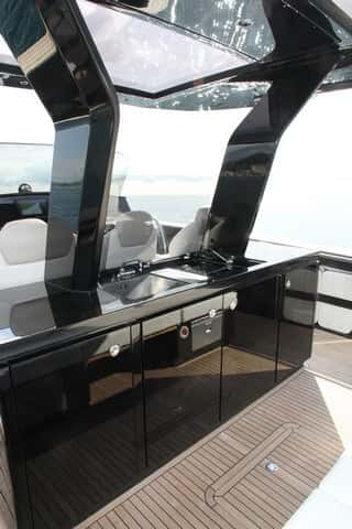 Sin embargo, es un barco de navegación sobresaliente, muy confortable y cómodo, aunque los flaps tipo interceptor, de Volvo Penta, son necesarios, especialmente si se ha montado en la popa la pasarela hidráulica (7.950 euros), que son unos cuantos kilos a popa.