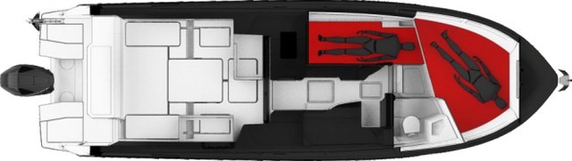 Esta eslora de tipo sport piloto se comporta con notable agilidad equipada solamente con un Verado de 350 Hp, pudiendo alcanzar los 40 nudos de punta.