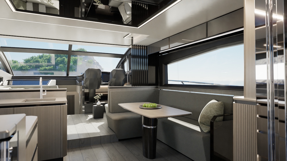 También se han mejorado las opciones de motor: para quienes buscan rendimiento está disponible una opción de alta potencia con dos Volvo Penta IPS 1350 que permiten velocidades de hasta 33 nudos y autonomía de hasta 260 millas a velocidad de crucero.