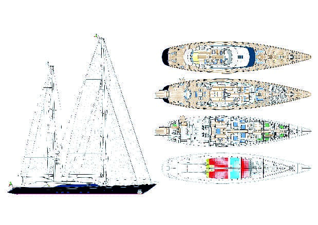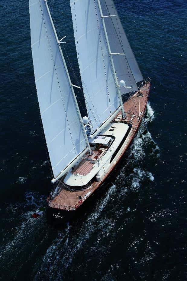 El plano vélico y el aparejo en queche, diseñado y construido con ingeniería de la División de Mástiles de la casa, permite levantar una impresionante superficie total de 1.500 metros cuadrados de vela. Tanto el palo mayor como el de mesana son de aluminio, mientras que las botavaras, también fabricadas internamente en Perini, son de carbono con sistema de enrollado interno.