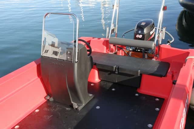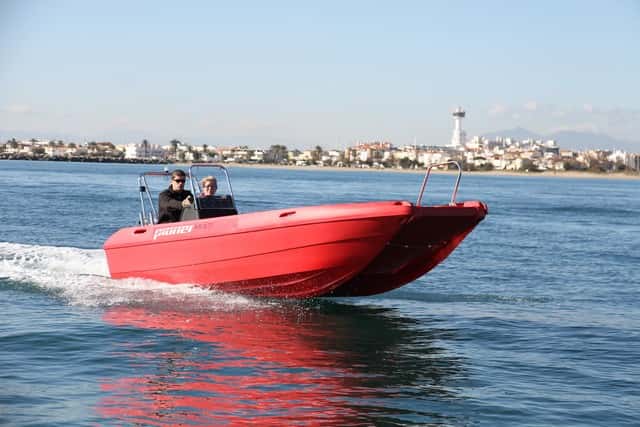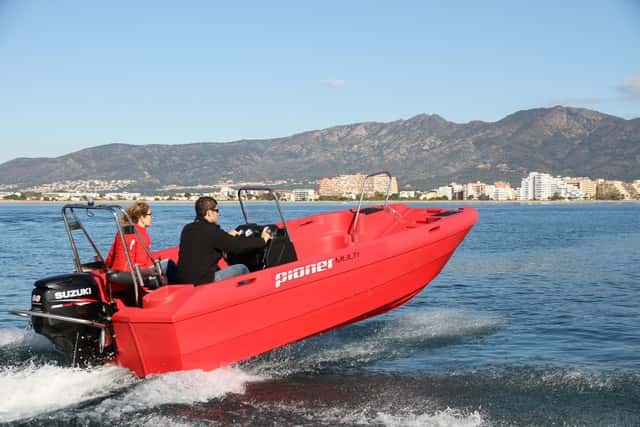 La Multi III de Pioner está basada en una carena de trimarán, y dada su notable manga y apoyo sobre el agua tiene una modo de navegar muy distinto al de un modelo monocasco, y más en esta eslora. En realidad no es una carena hecha para correr, sino más bien para tareas de rescate, en las que la estabilidad y la fiabilidad son factores importantes. Con un Suzuki especial, como es el DF60AV High Trust, desarrollado para tareas profesionales, ya que dispone de una transmisión algo más robusta que el 60 Hp normal de la misma marca, la Multi III se convierte en un gran conjunto.