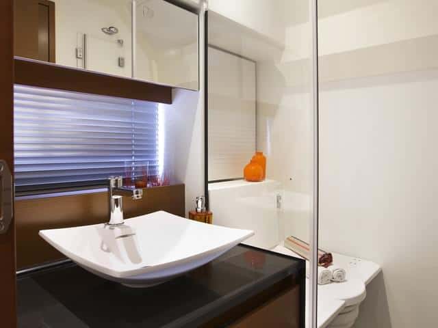 Cubierta tradicional, que aprovecha bien los espacios, propia de un crucero, con una distribución en la que triunfa la bañera por sus dimensiones y la gran plataforma de baño.