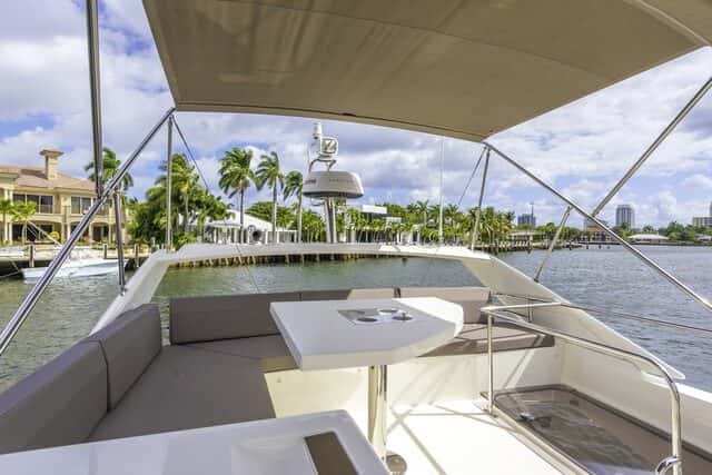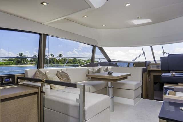 Barco para largas travesías, con muchos metros cuadrados al aire libre, ideal para el Mediterráneo (y también para zonas como la de Florida en EE.UU. donde esta gama tiene un notable éxito comercial).