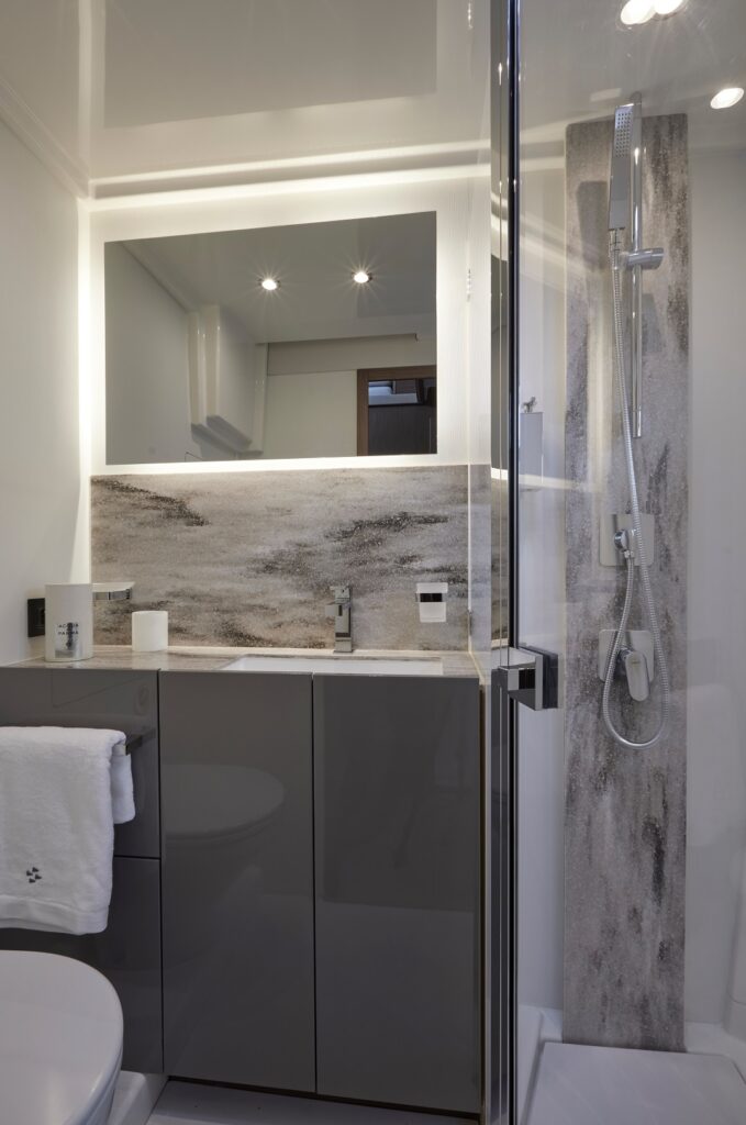 Los otros dos camarotes para invitados, transversales y simétricos, también disponen de acceso propio desde la cabina principal y baño privado, con camas individuales que pueden unirse. Los invitados disponen de almacenamiento bajo la cama y de un armario colgador y cajonera.