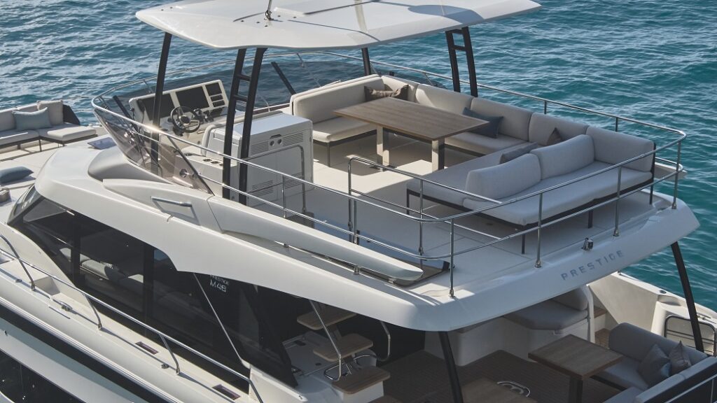 El primer multicasco de Prestige prima la eficiencia, el confort y la navegación pausada.