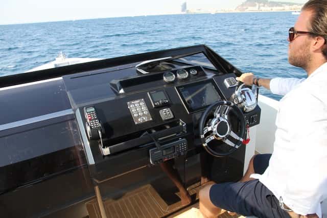 Cómodo y con excelente visibilidad, se basa en una consola amplia donde se pueden instalar todos los equipos necesarios: pantalla multifunción, indicadores de los Suzuki, mandos electrónicos, panel de interruptores de barco, táctiles, radioteléfono y una barra de inox forrada en piel que hace las funciones de asidero para el acompañante. No falta detalle, excepto la guantera, vertical, a la altura de las rodillas, demasiado estrecha y poco menos que inútil.