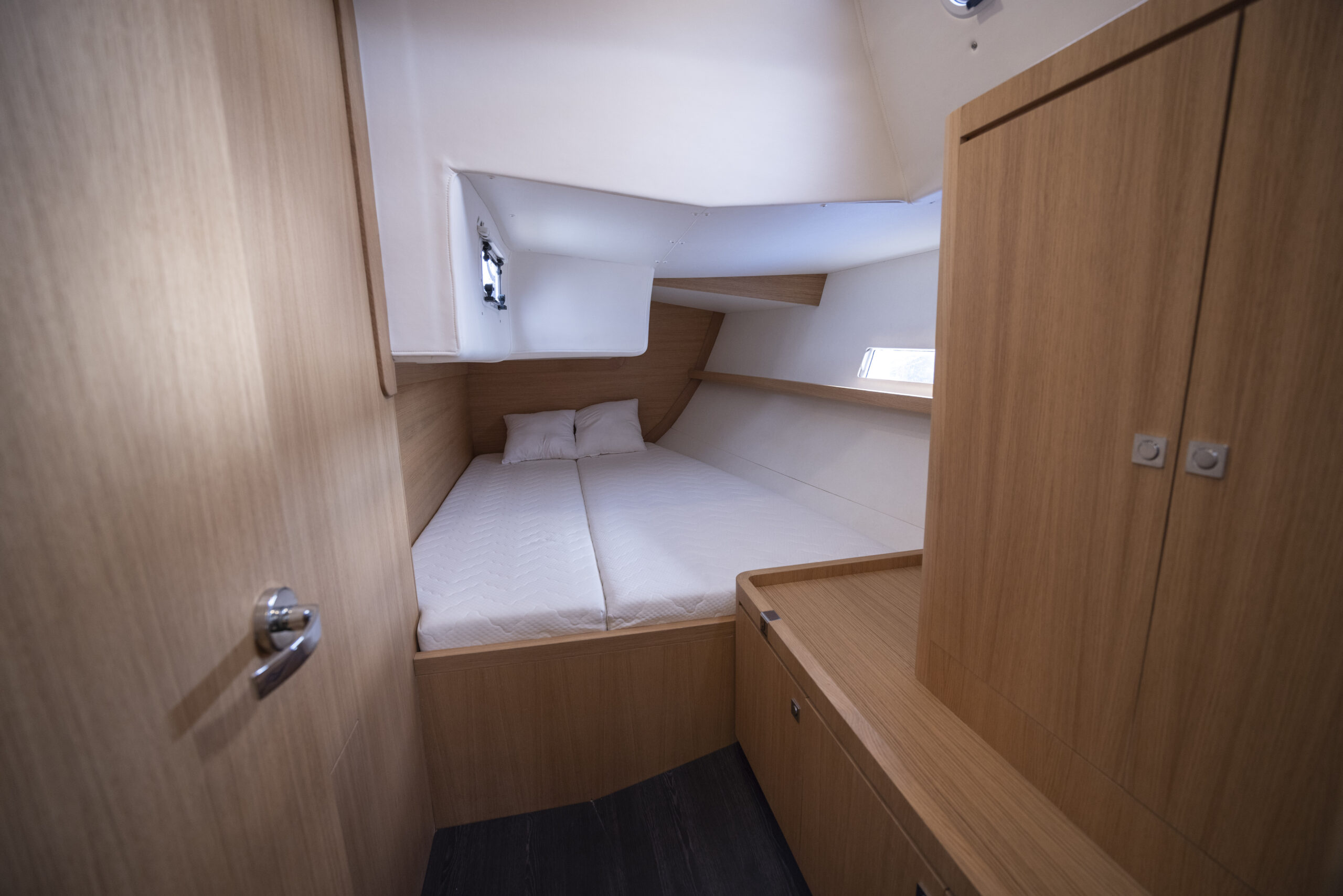 Sin embargo, si no se requiere, opcionalmente este espacio puede convertirse en una tercera cabina. Personalmente, la opción de entregar el barco de serie con pañol creemos que es un acierto.