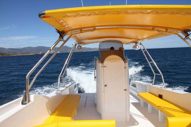 La popa, totalmente abierta, también facilita el acceso desde el pantalán, aunque un quitamiedos –como un cable, por ejemplo- ofrecería una mayor sensación de seguridad.