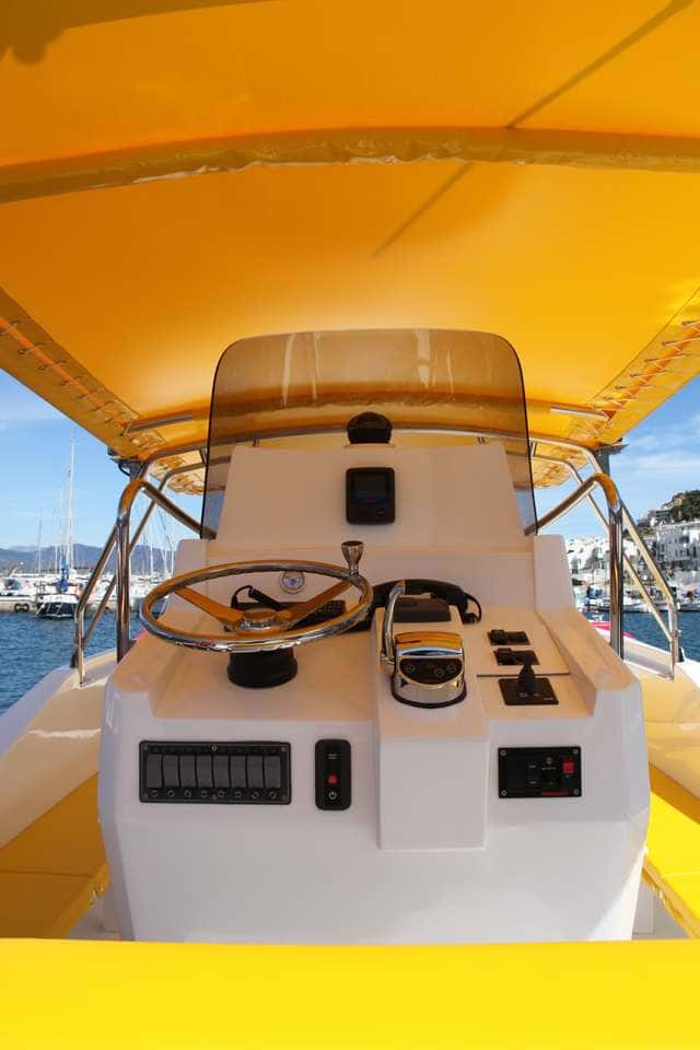 Es un barco para pasaje, y como tal se ha diseñado con el fin de obtener las mejores prestaciones navegando, aprovechar de la mejor manera el espacio y ofrecer el mayor confort a los ocupantes. La bañera es espaciosa, amplia y se beneficia de una notable manga de nada menos que 3,50 metros, esto permite disponer los asientos a lo largo de los costados, y en la proa formar un espacio semicerrado con dos bancos transversales complementados por los adosados a las amuras.