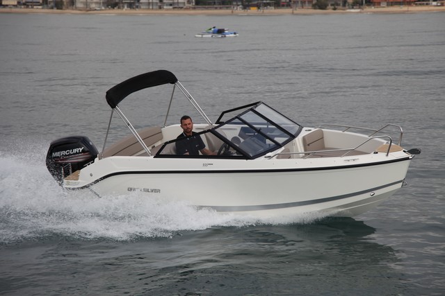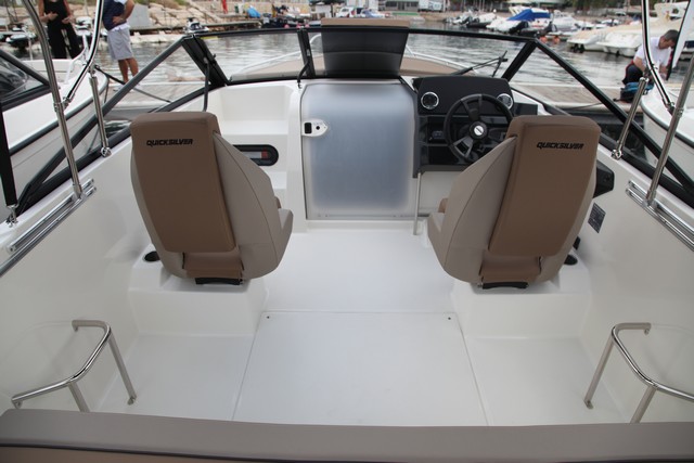 Cuatro son las esloras Cruiser de Quicksilver, y esta es la menor. Es una eslora de 6 metros en la que se ha procurado obtener el máximo aprovechamiento en todos los sentidos, tanto en los espacios de la bañera —convertible en dinete— como en la cabina, donde se ha obtenido el máximo volumen. Característica interesante en este modelo es el paso a proa a través del parabrisas por la banda de babor, en vez de ser un paso central. Esta solución es más cómoda y roba menos espacio a la bañera, dejando una entrada también más cómoda. La proa queda ocupada por el solárium, dotado de tres colchonetas.