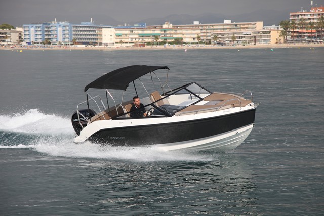 Navegamos este modelo con un Mercury de 100 Hp, una potencia muy bien adaptada a este barco, ya que con el gas a fondo superamos los 31 nudos de punta, y mantuvimos un régimen de crucero muy cómodo a 21 nudos y 4.000 rpm. Eslora muy manejable, estable, rápida, que no necesita más motor, y que resulta una muy buena opción como barco de iniciación.