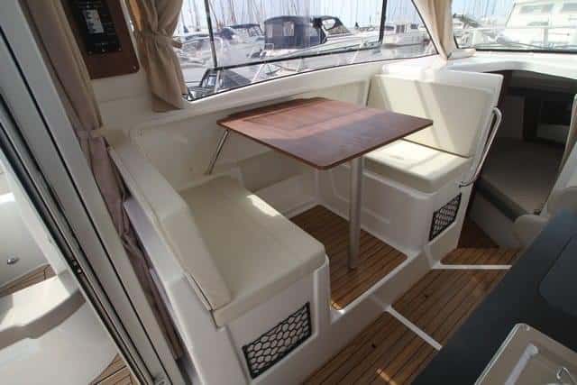 La zona principal presenta la mesa de la dinete en la banda de babor, con dos sofás dobles, cara a cara, no muy anchos, que se pueden convertir en una litera doble. Debajo de los asientos se dispone de cofres de estiba.