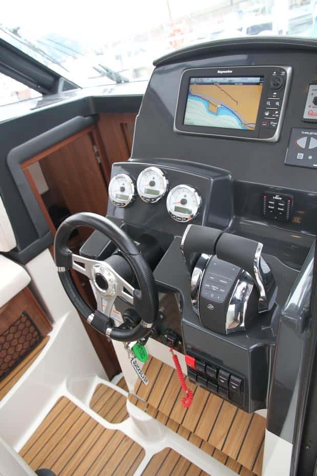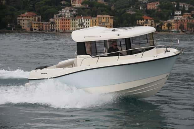 En cuanto a navegación, esta Captur se beneficia de las experiencia de modelos anteriores, con una buena carena en V, planeadora y estable. Con un Mercury F150 EFI se pone a 33 nudos de punta a 5.200 rpm (también incrementaría las vueltas que le faltan con un paso menos de hélice); y mantiene un crucero de casi 23 nudos a 4.000 rpm con todo confort. Es un barco muy gobernable, con gran capacidad de giro y una salida en planeo muy buen, ya que en 7 segundos el barco sale del agua y en diez más se pone a tope. Notable en la adaptación del motor y en la bañera, perfectamente adaptada para la pesca.