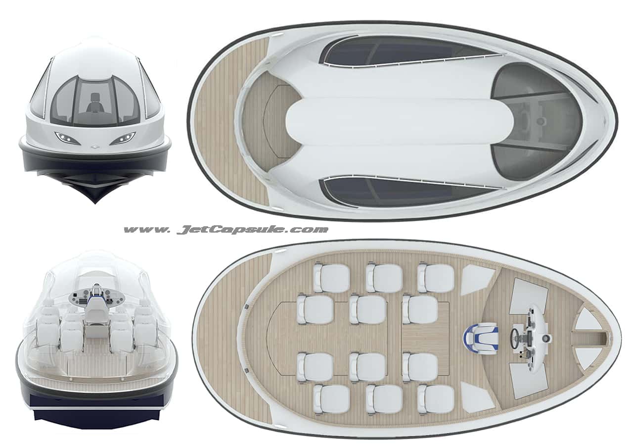 Después del éxito del Jet Capsule, el estudio de diseño italiano Lazzarini presentó recientemente la versión rápida de su “mini yate” denominada Repitle. Este nuevo modelo es 500 kilos más ligera que su predecesora, y monta un motor Illmor MV8 que le brinda una potencia máxima de 570 HP a 6.000 rpm, que le ofrecen mayor maniobrabilidad y le permiten alcanzar una velocidad máxima de hasta 50 nudos.