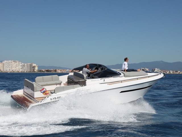Con los dos MerCruiser de 300 Hp el barco se disfruta a fondo, se comporta francamente bien, y no transmite la sensación de ser una superdeportiva radical, más bien al contrario, cumple con las prestaciones de un buen crucero de día deportivo, seguro y de navegación agradable.